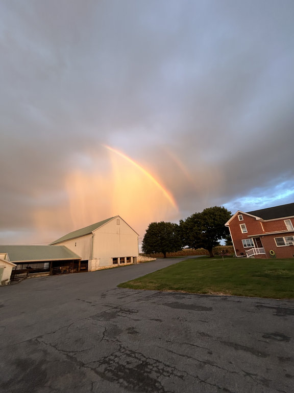 This picture I took after it rained at our farm. This shows tonal balance because the rainbow and the other parts of the sky balance each other out.