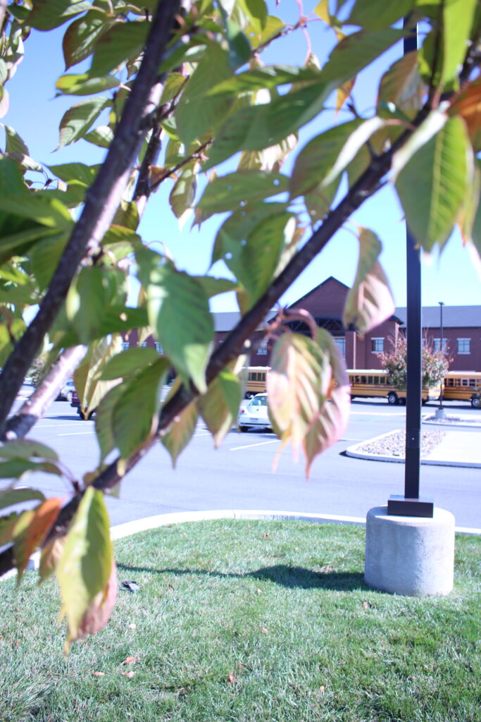 This photo was taking in maual mode and I manually set all the settings. I also used framing by using the tree leaves as a frame. Something that I would do differently would to make the buses, and the school more visible.
