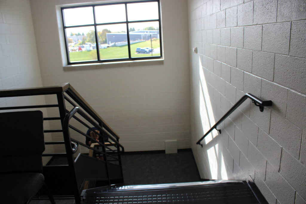 This picture shows leading lines because the stairs direct your eyes down the stairs, and also the railing. There isn’t really a main subject but the lines to a great job of moving your eye.