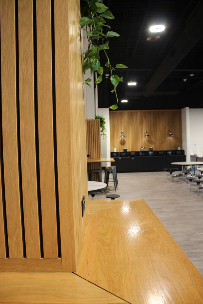 This picture was taken in the cafeteria and the lines on the little table direct you eyes up, but the table part of it also direct your eye down toward the mirror waves, which gives it a cool look. The main subject in this picture is not as clear as it should be, but I was going for the hanging plants being the main subject.