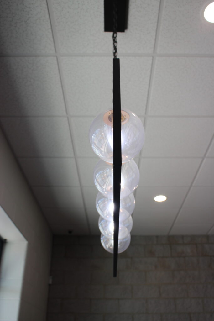 This picture is in the library and the main subject is the light bulbs. The leading lines in this picture are the ceiling lines and also the frame that is framing the lights gives it another line.