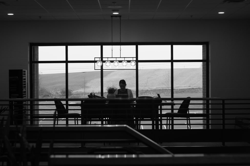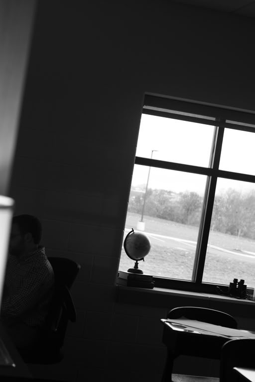 These two pictures have the subjects backlit. The light is coming in from the windows behind them and creates a very moody silhouette for both pictures. Monochromatic color schemes can really emphasize this type of lighting and bring out the stark contrast of the shadows and the light behind them.