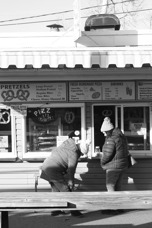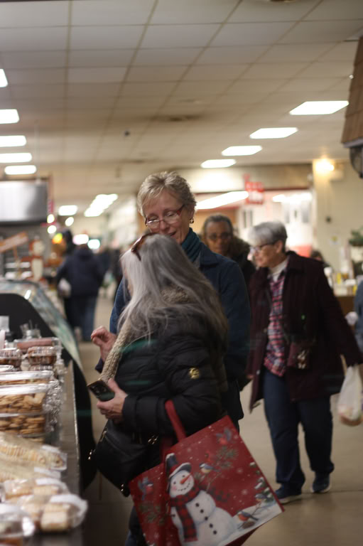 These pictures show interactions between people that weren’t posed. In the picture on the left, the two women are trying to figure out what to buy from the pretzel stand. In the right picture two other women are trying to decide which pastry to get from the counter.