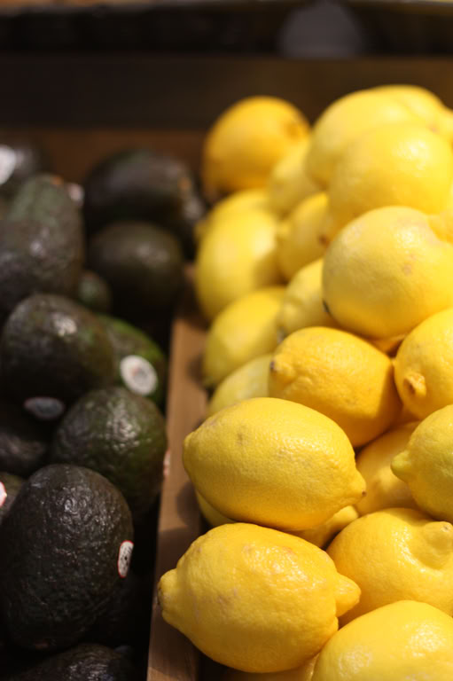 These two pictures also show composition rules. The left picture show color balance with the dark avocados contrasting against the bright lemons. The right picture shows leading lines with the bathroom arrow pulling the eye away from the sign. It also has rule of thirds because the sign is on the thirds line.