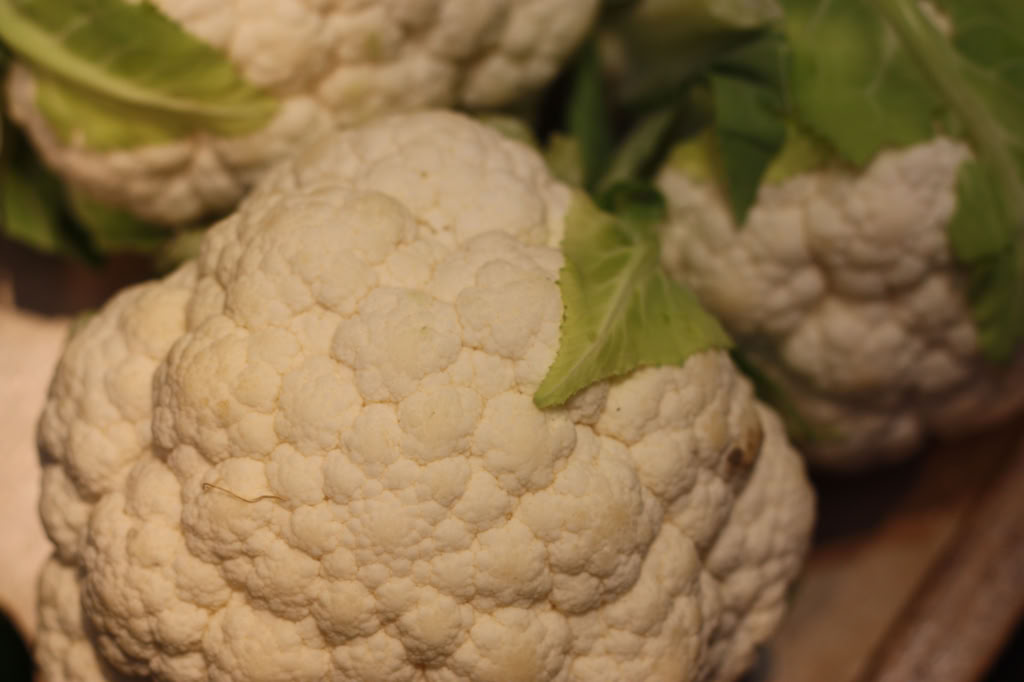 These two picture demonstrate different perspectives. The one on the left shows the cauliflower from below while the right picture shows it from above. I like that it gives the cauliflower more dimension with both of these pictures showing details the other missed.