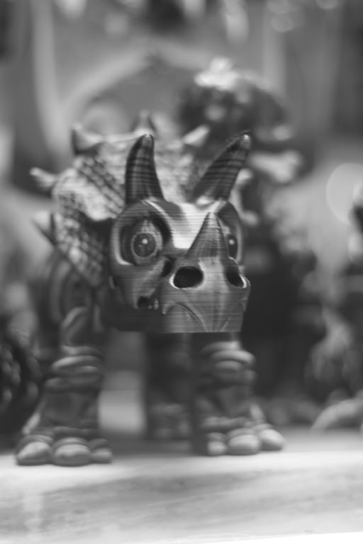 These two pictures show some interesting things that I saw at Green Dragon. The first is a 3d printed dinosaur. I took it really close up and in black and white which made it look threatening and more real than the plasticky version that would’ve showed up with the color on. The second picture is of a gnome with different chairs for holding phones. This one was a random stand and I thought it was cool how all the gnomes are different and so it also brought some symmetry to the picture.