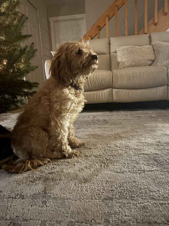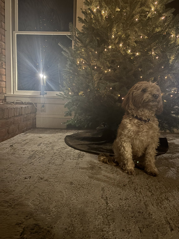 This photo above is showing front lighting. The light is coming from in front of my dog.