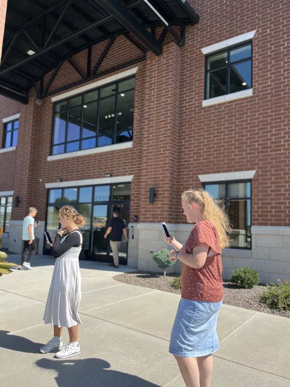 I took this picture at school of Lilah and Heidi taking pictures. It shows layering with Heidi in the foreground, Lilah in the middle ground and the school in the background.