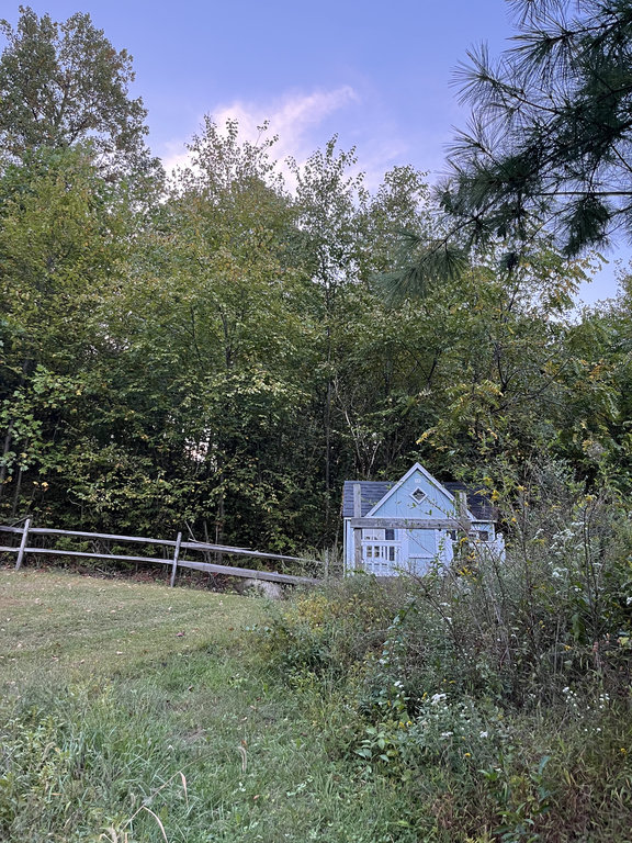 In the photo the little house is man-made balancing with the trees which are made by God.