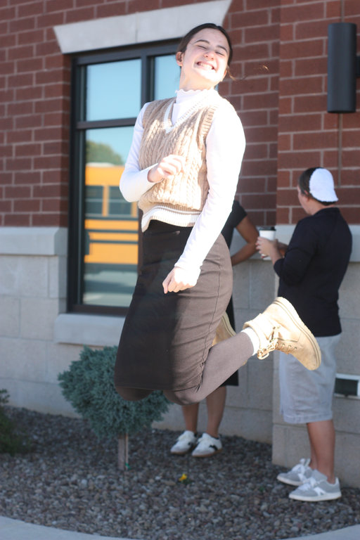 As you can see this photo was taken in sports mode because the motion of my friend Megan jumping is frozen. If I took a shot like this again I would take it in a sport setting and not just in front of the school.